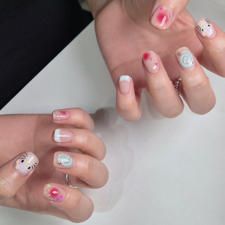 큐티키티뽀짝이 손톱에 다담겨있네요~