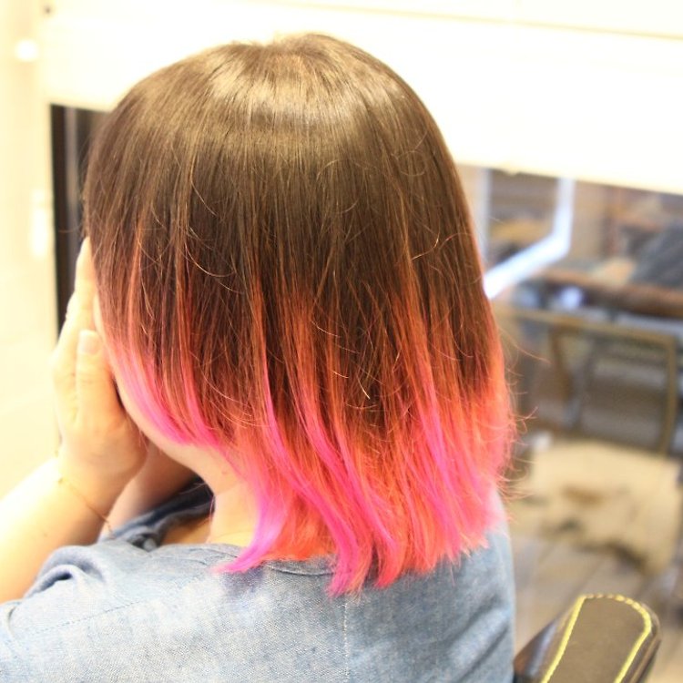 레이어드컷에 핑크컬러로 연출해 봤습니다 탈색 1회 시술비용에서 회당(절충) 추가되세요.