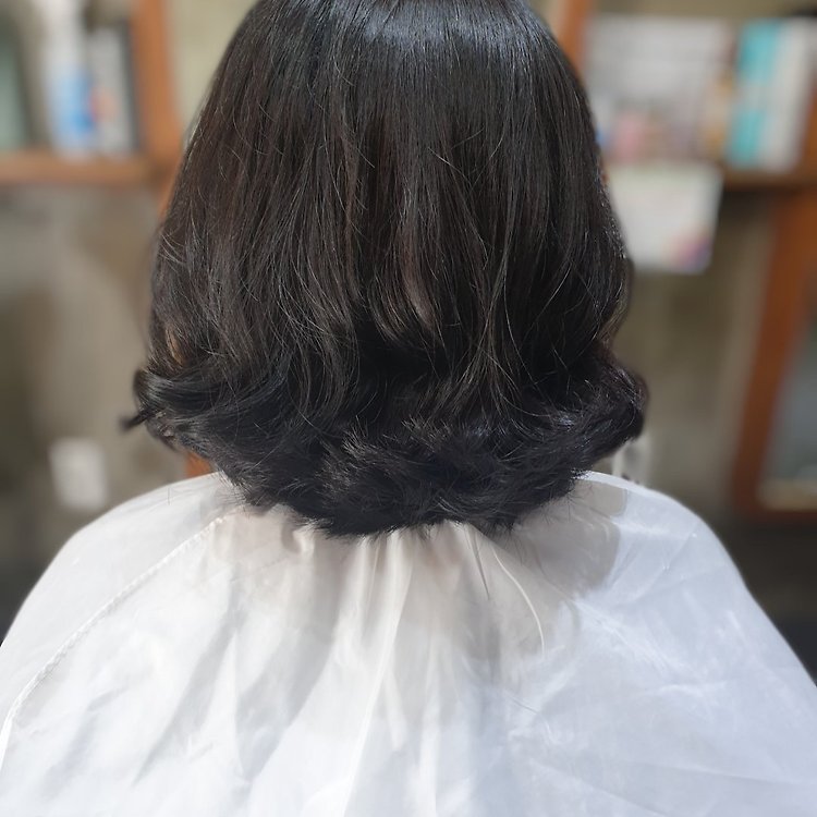부스스한 부분은 깔끔한 볼륨매직으로 아랫쪽은상큼한 펌으로 시술되는 믹스펌입니다^^